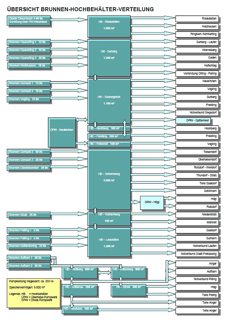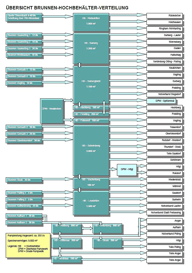 - Hochbehälter 14 Stück (gesamt 10.450 cbm)